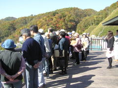 堤体盛立工事進捗率50%を達成した胆沢ダムを、ダム学習館職員の方の説明を受けながら見学しました。